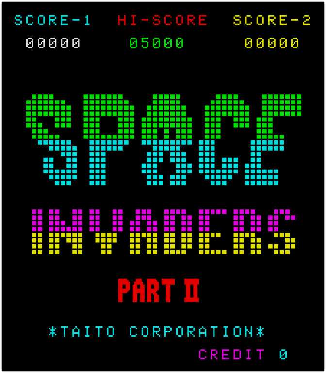 "SPACE INVADERS PART II" is a shooting game released by TAITO in 1979.