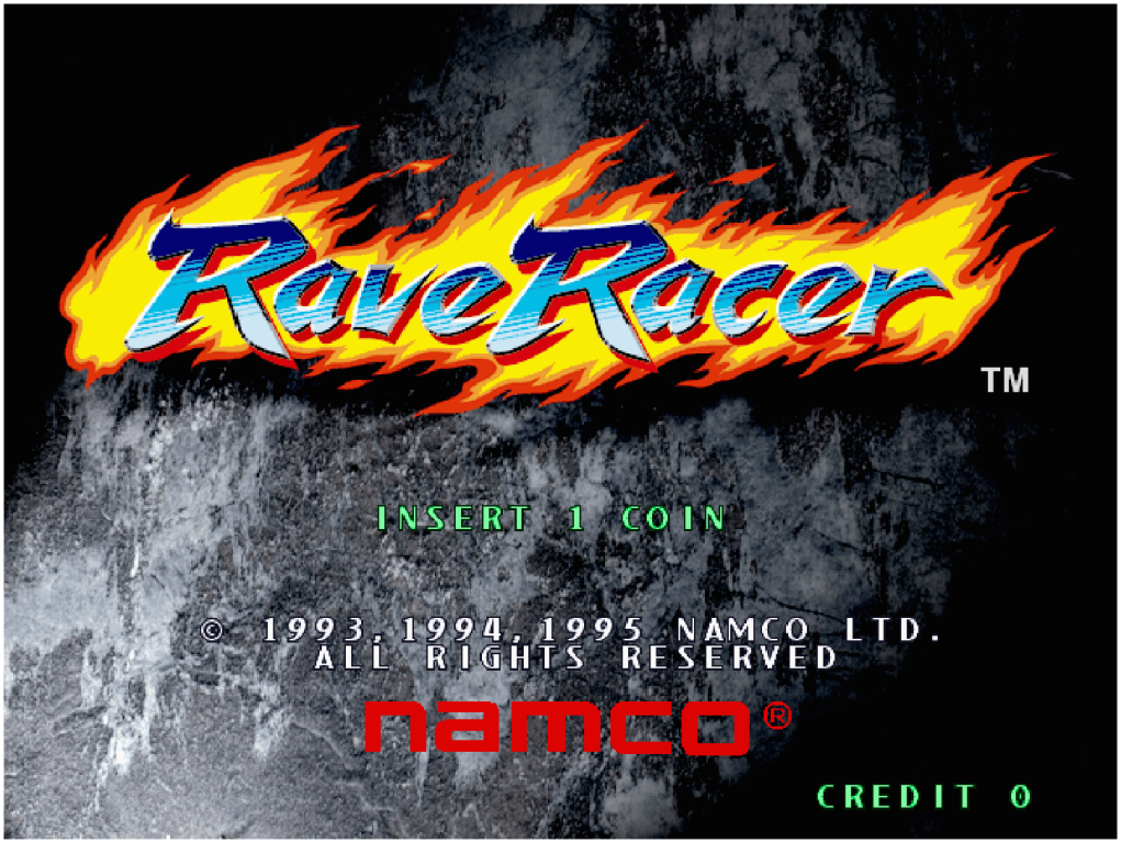 "Rave Racer" is a racing game released by NAMCO LIMITED (current Bandai Namco Entertainment Inc.) in 1995.