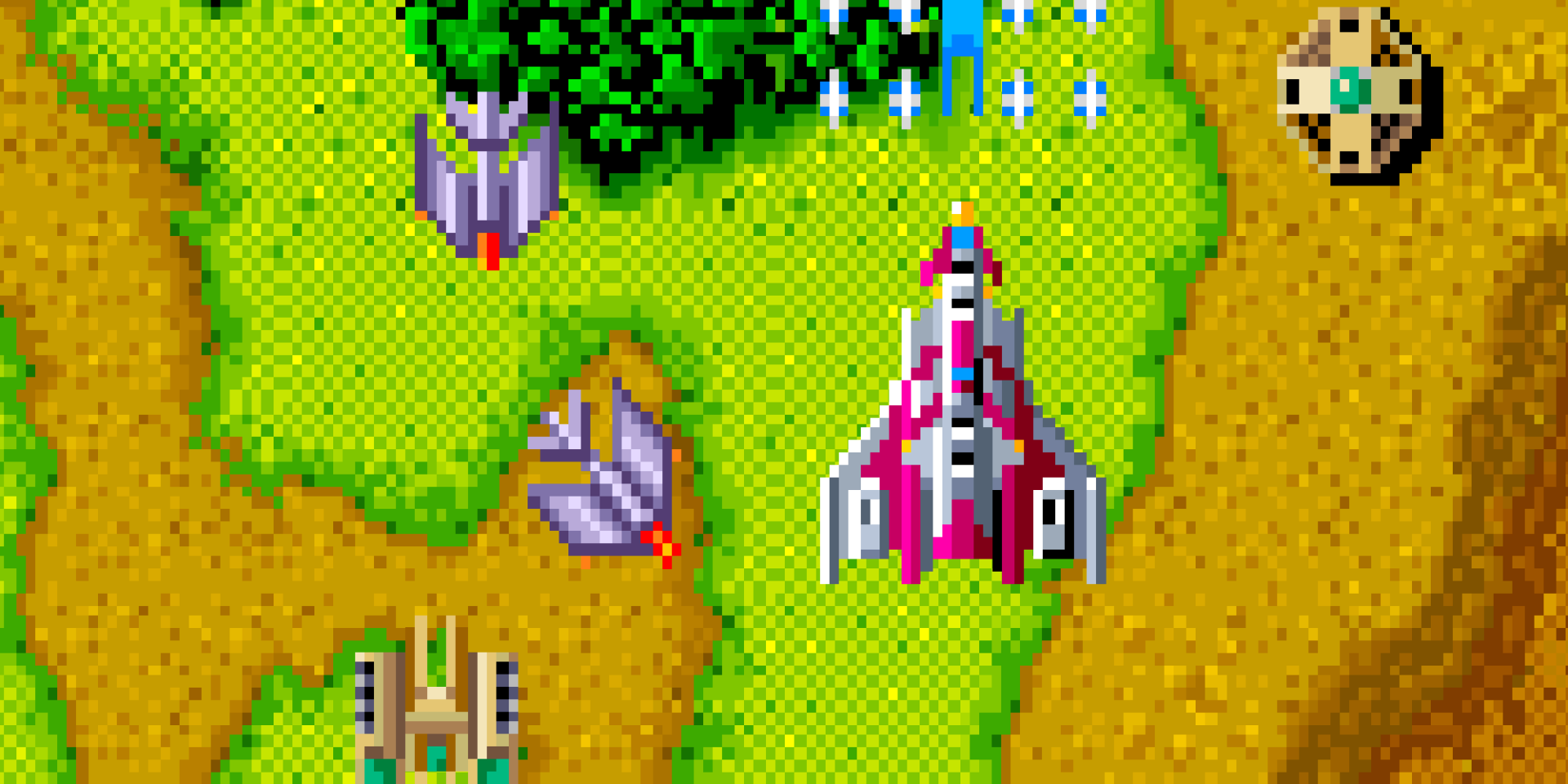 “TERRA CRESTA” is a shooting game that was released from Nichibutsu in 1985. Players recapture parts that have been left in the ground, to intercept the enemy in the formation attack. To aim the space devil Mandora.