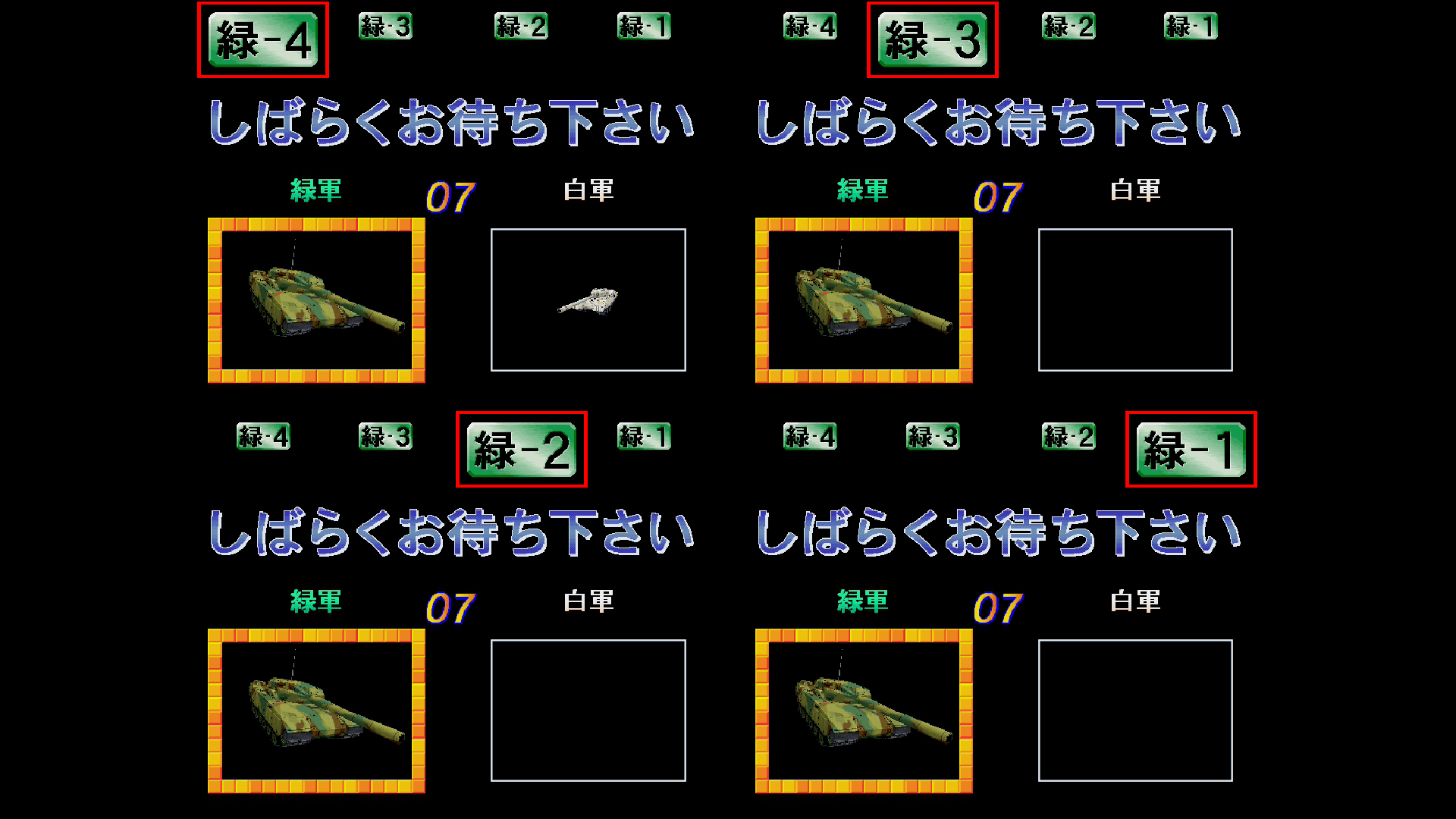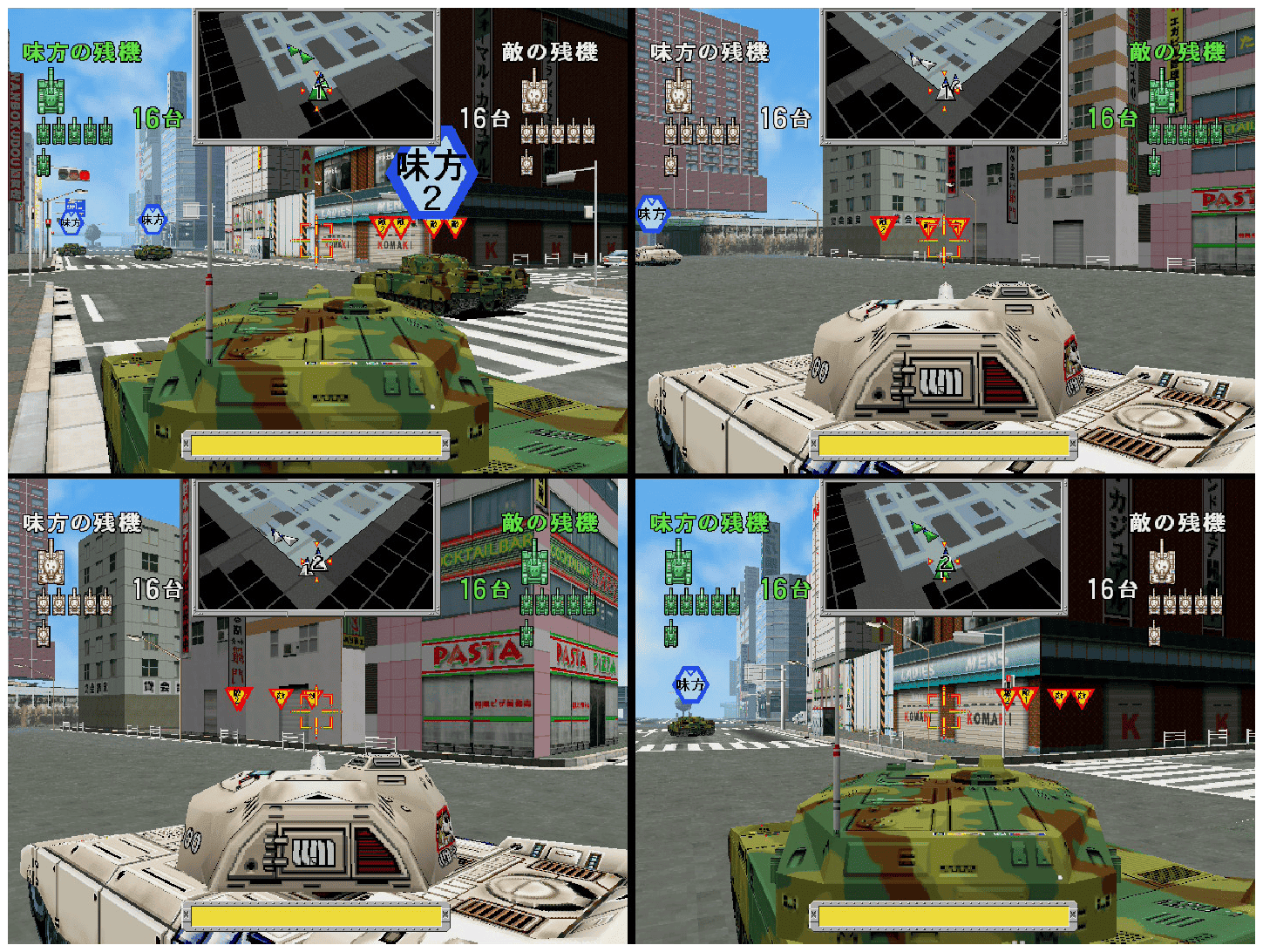 海外版では、「JOIN THE BATTLE!」が表示されているときに、それぞれが制限時間内に[クレジット追加]ボタンを押し、「PUSH START BUTTON」と画面に表示されている画面で、[視点切り替え(スタート)]ボタン押すと、マルチプレイに参加することができます。