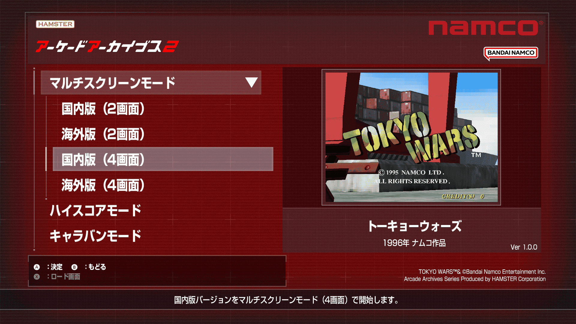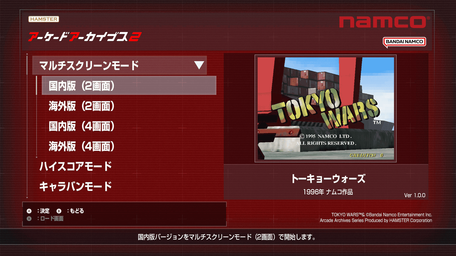 Nintendo Switch 2、PlayStation 5、Xbox Series X|S向けの『アーケードアーカイブス2 トーキョーウォーズ』は、1,800円で販売します。Nintendo SwitchおよびPlayStation 4向けの 『アーケードアーカイブス トーキョーウォーズ』をご購入いただいている場合は、Nintendo Switch 2およびPlayStation 5向けの 『アーケードアーカイブス2 トーキョーウォーズ』を330円で購入できる所有者割引をご利用いただけます。ご購入に関しての詳細は各オンラインストアをご確認ください。