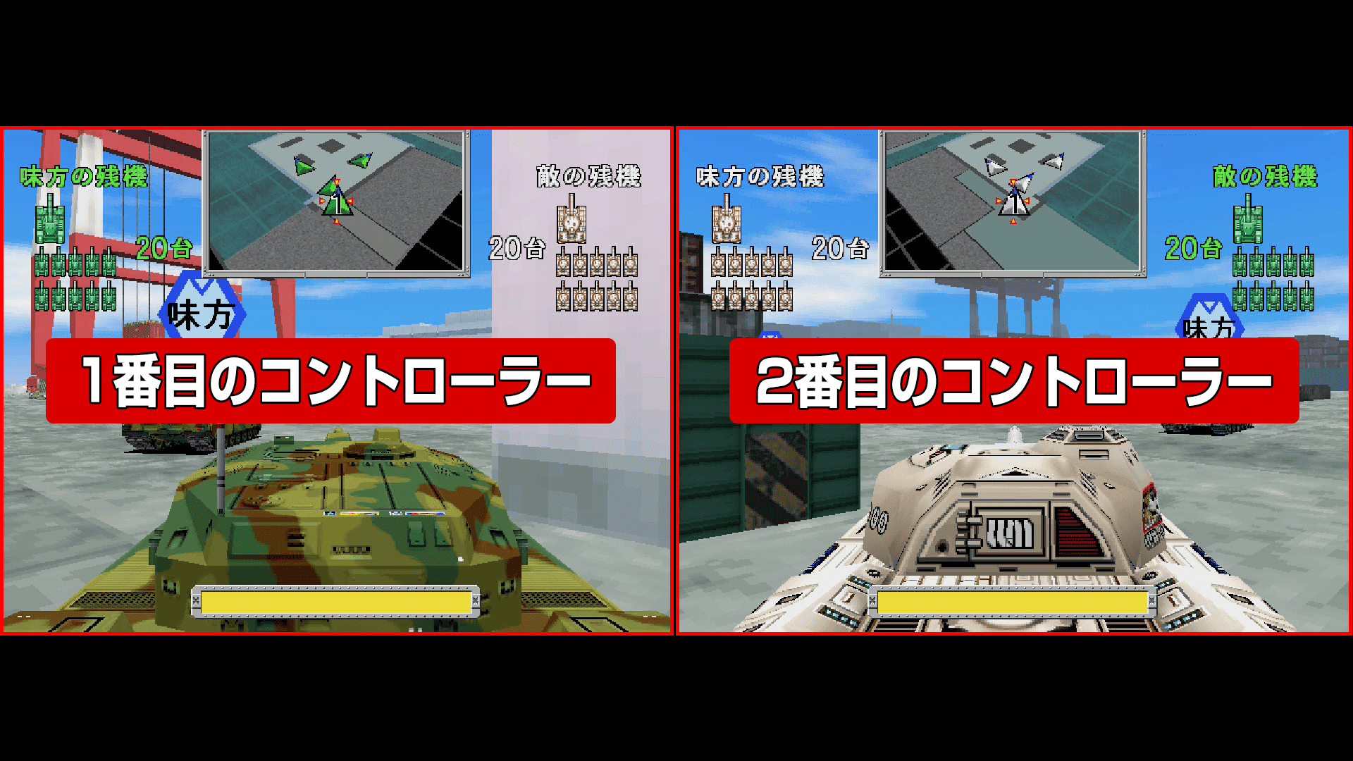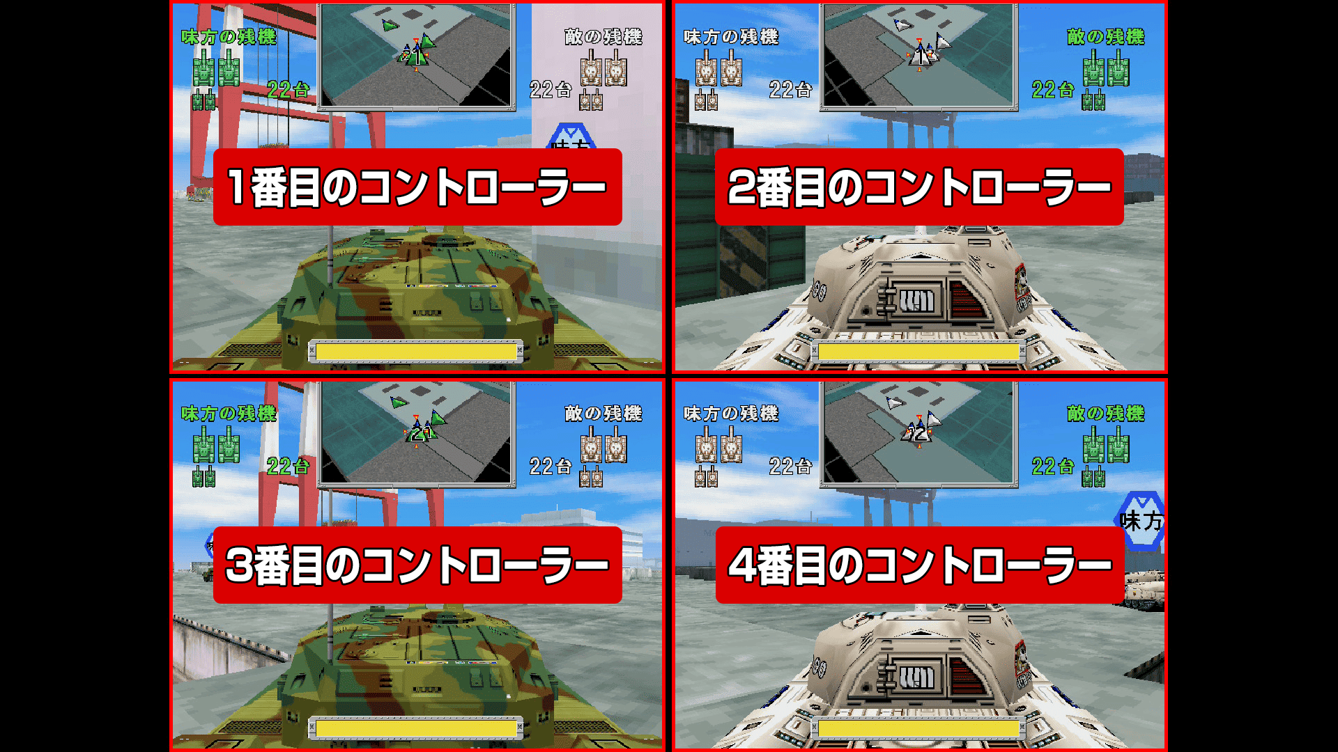 1番目のコントローラーは左の画面、2番目のコントローラーは右の画面を操作することになります。マルチスクリーンモード(4画面)