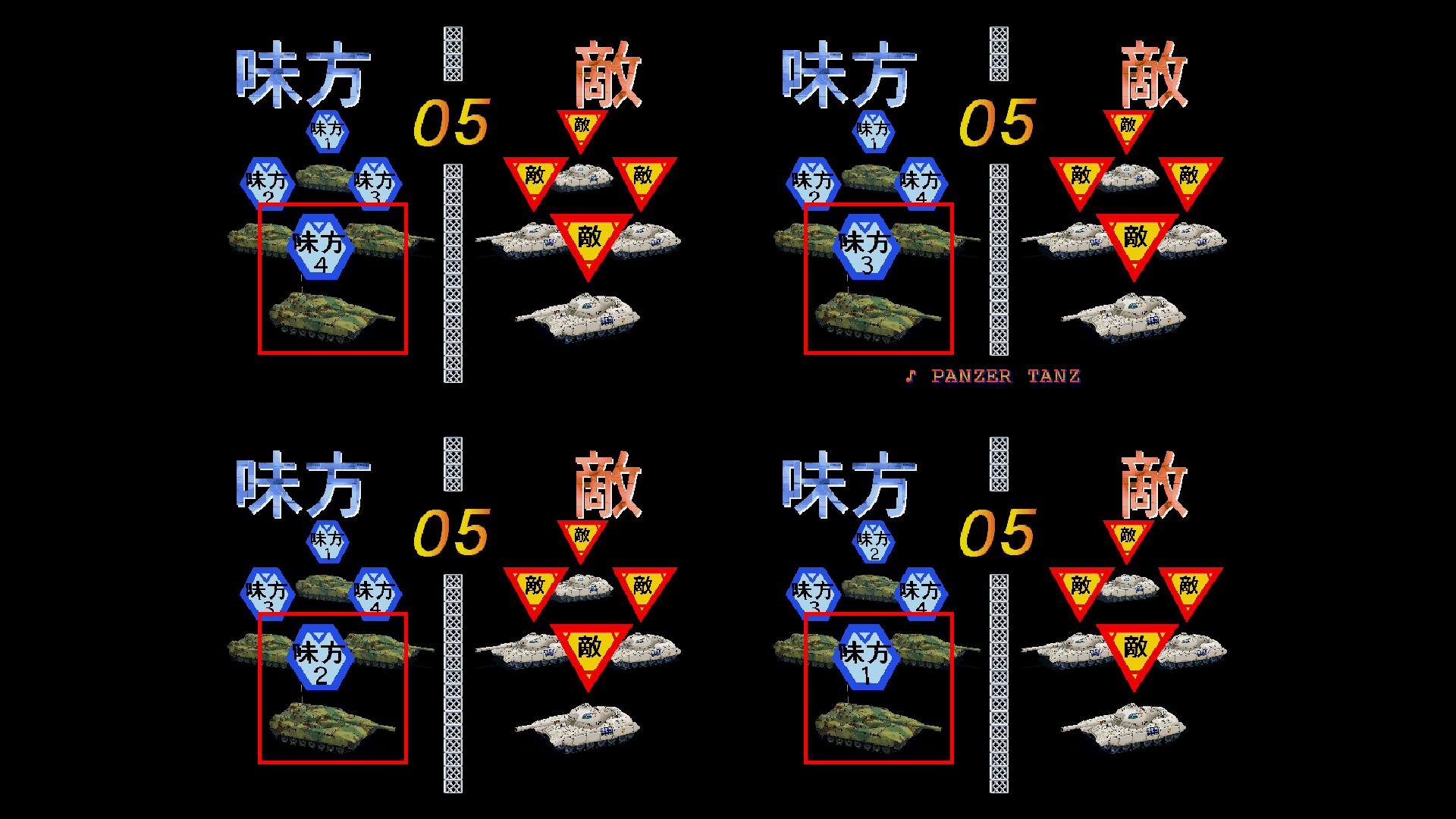 1番目のコントローラーは左上の画面、2番目のコントローラーは右上の画面、3番目のコントローラーは左下の画面、4番目のコントローラーは右下の画面を操作することになります。国内版でのマルチプレイ