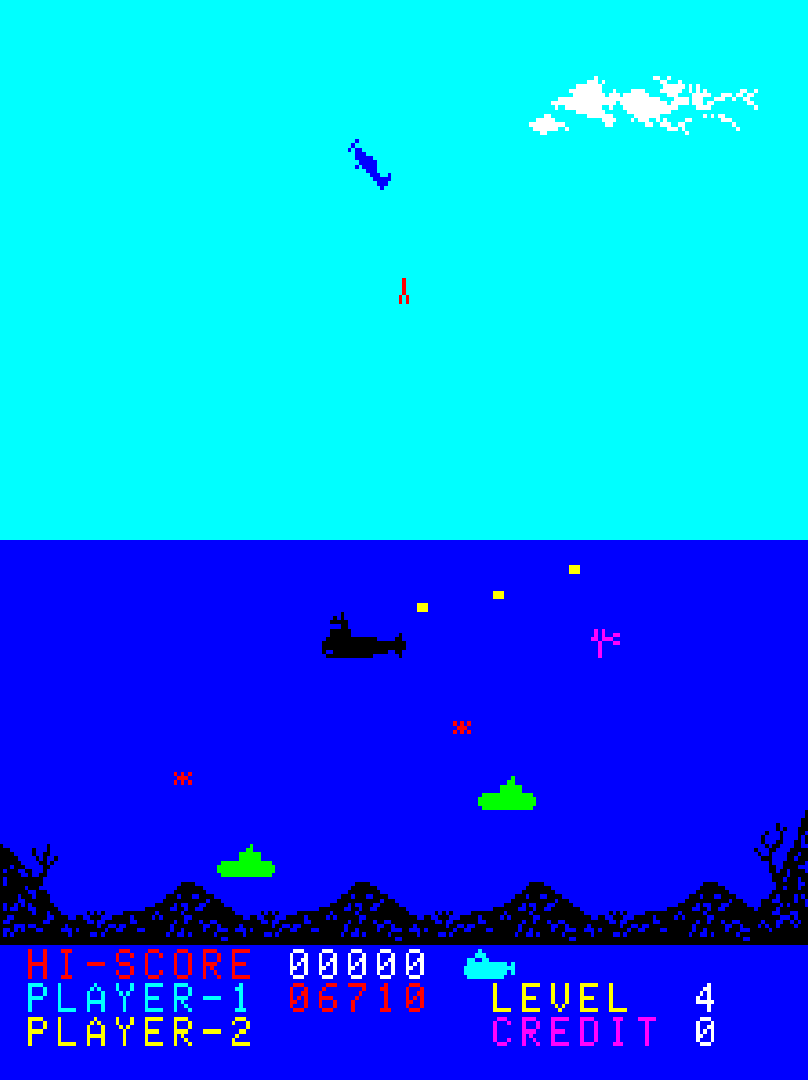 潜水艦を操縦し、真上にのみ発射可能なミサイルを武器に、迫りくる敵軍と戦います。